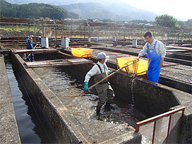 下呂支所では、来月にかけてアマゴ・ヤマメ・イワナの採卵と人工受精を順次実施する予定で、現在はアマゴとヤマメの採卵を実施しています