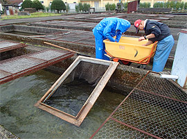 下呂支所で秋季の採卵と人工受精の作業が始まりました。これから来月にかけて、アマゴ・ヤマメ・イワナの採卵と人工受精の作業が続きます。