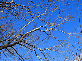 カワウのものと推測される巣や、糞で枝が白くなっている木が確認されました。