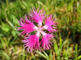 ナデシコは、秋の七草のひとつですが、下呂支所周辺では毎年夏至の頃に咲き始めます。