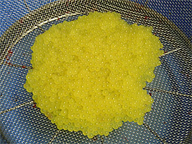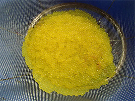 受精前の洗卵作業 (等張液で卵を洗浄)