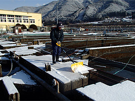 下呂支所では、通路の除雪や飼育池の防鳥ネットの点検などの作業を行いました。
