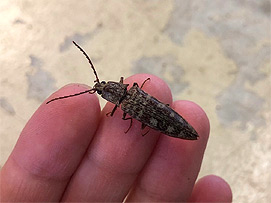 下呂支所のふ化室にコメツキムシとゾウムシが現れました。しばらく観察した後、職員が屋外へ逃がしました。