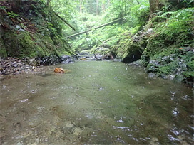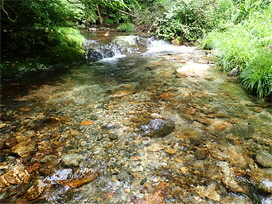 日と同じ渓流の上流側の区間で実施し、アマゴ・イワナ・タカハヤ・カワヨシノボリ・カジカ大卵型の生息を確認しました。