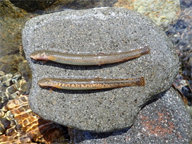 カワヨシノボリ (左側)、カジカ大卵型 (右側)