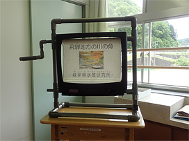 下呂支所の職員は、飛騨地方の川の魚の見分け方について解説しました。