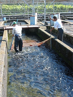 アマゴ親魚の取り上げ作業