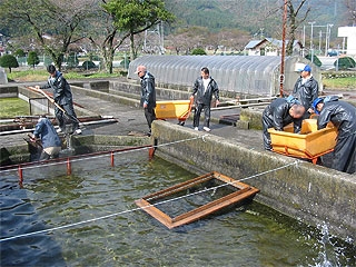 親魚の取り上げ作業