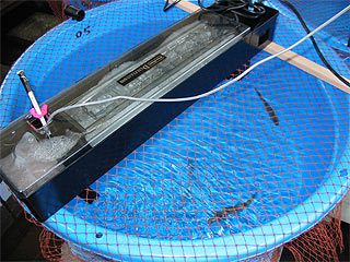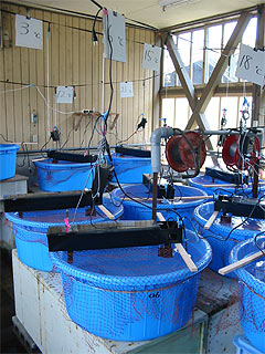 水槽実験のほか、アマゴやヤマメなどの発眼卵の収容、仔稚魚の育成に使用している部屋です。